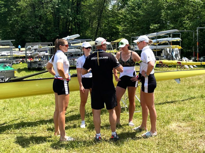 Im Training zu Hause in Berlin hatte Trainer Marcin Witkowski versucht durch viele Trainingsbelastungen die Wettkampfrennen zu simulieren, trotzdem stellen die echten Rennen nochmal eine andere Situation dar. So startete Sarahs Mannschaft etwas zu verhalten in den Vorlauf am 25.05. Die Mannschaft fand dann zwar gut zusammen und hatte ein hohes Tempo auf der Strecke, für den Sieg reichte es jedoch nicht. Nur die Britinnen als siegreiches Boot qualifizierten sich direkt für das A-Finale, alle anderen Boote mussten alle in den Hoffnungslauf, so auch das deutsche Team mit ihrem 4. Platz. Am folgenden Tag fand direkt der Hoffnungslauf statt – diesmal startete Sarahs Mannschaft deutlich aggressiver in das Rennen. Souverän ruderte die Mannschaft auf den 2. Platz und qualifizierte sich damit für das A-Finale. Nur 2 Sekunden lagen sie im Ziel hinter den siegreichen Ukrainerinnen und deutlich vor den Französinnen auf dem dritten Rang.