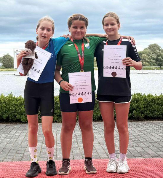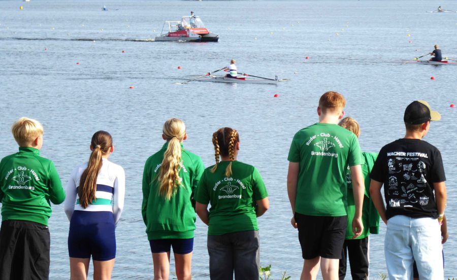 Finja-Rieke Huber sicherte sich sogar zwei Mal Gold. Sie war im Mädchen-Einer der AK 10/11 die schnellste Brandenburgerin und auch im gesteuerten Kinder-Doppelvierer der AK 10/11, in dem neben ihr noch Alex Raabe, Raphael Kerber, Laurent Schwarz sowie Steuermann Matthes Perlbach das Boot verstärkten, konnte der Sieg errungen werden.