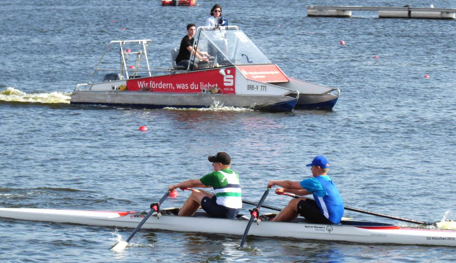 Außer Konkurrenz, aber mit großem Kampfgeist, gingen Karl Pfeiffer und sein Doppelzweier-Partner Edgar Steffens vom RC Plaue (Havel) im Inklusionsboot über die 500 Meter-Strecke. Neben den
