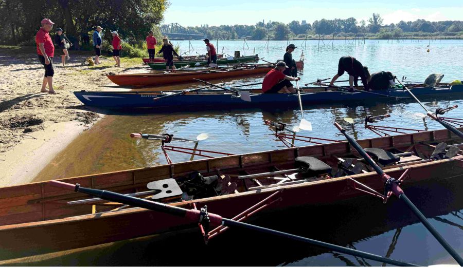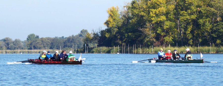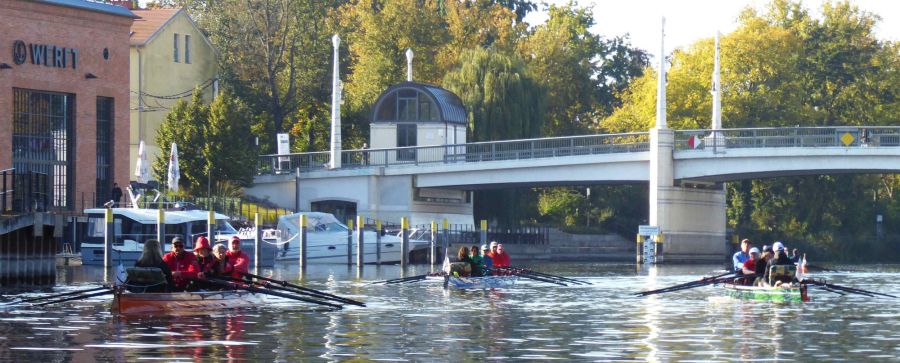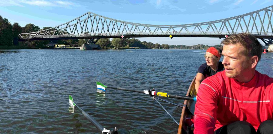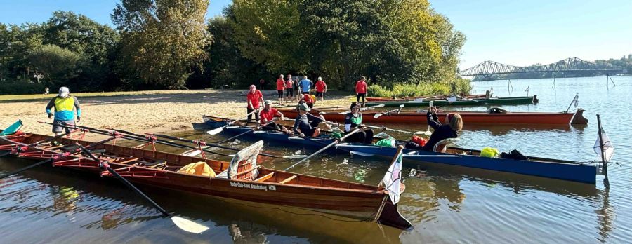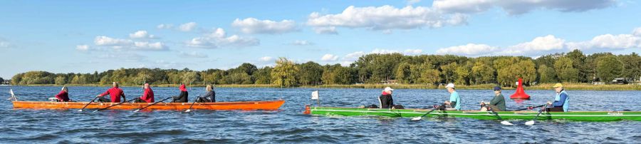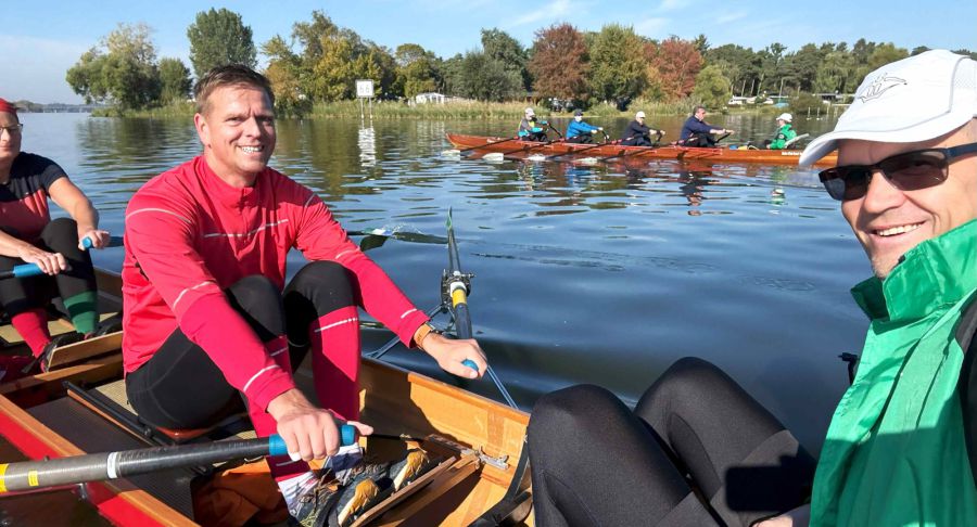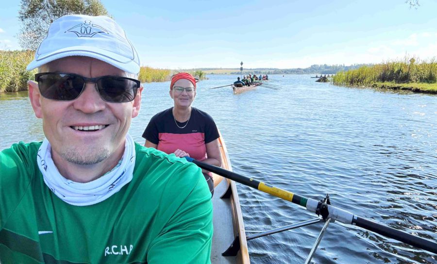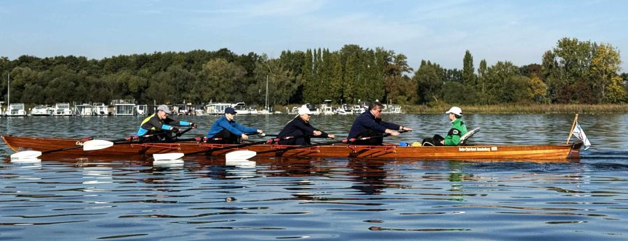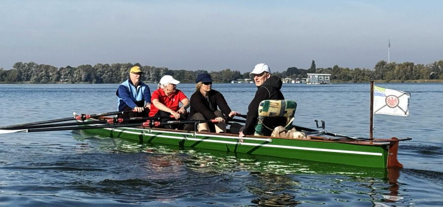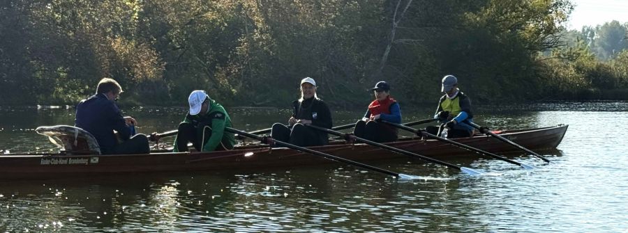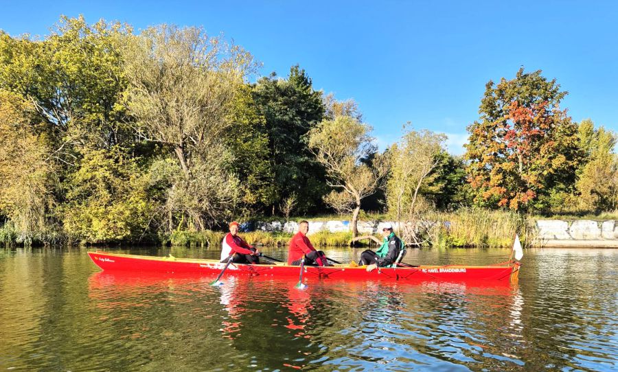 Und wie kann man diesen Feiertag besser zelebrieren, wenn nicht mit einer gemeinsamen Tour eines west- und eines ostdeutschen Ruderclubs. So versammelten sich 11 Ruder*innen vom R.C.H.B. und 11 Gäste vom Regensburger Ruderverein am 03. Oktober um 09:00 Uhr vor den Bootshallen und warteten gespannt auf die Bereitstellung der Boote und die Bootseinteilung. Nach anfänglichen Schwierigkeiten (so musste ein Fünfer auf Vierer mit Steuermannsplatz umgebaut werden), wurden nach und nach die Boote zu Wasser gelassen. So waren wir schließlich fünf Boote (drei Vierer, ein Dreier und ein Zweier jeweils mit Steuermann). Unser Ziel war das ca. 18 Kilometer entfernte Wusterwitz.