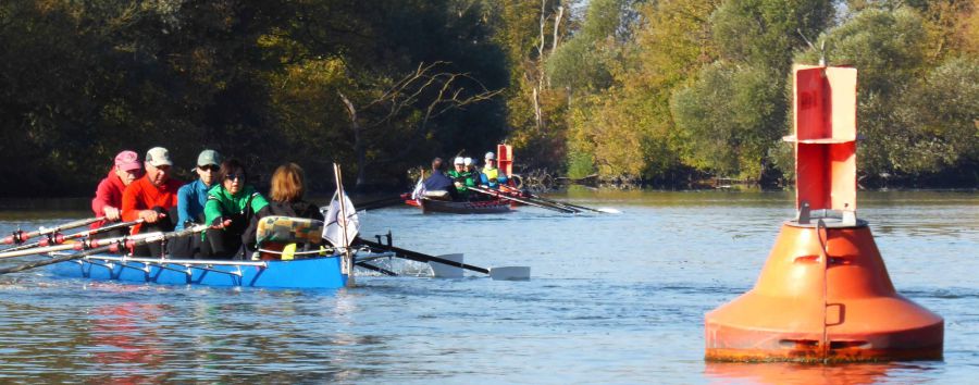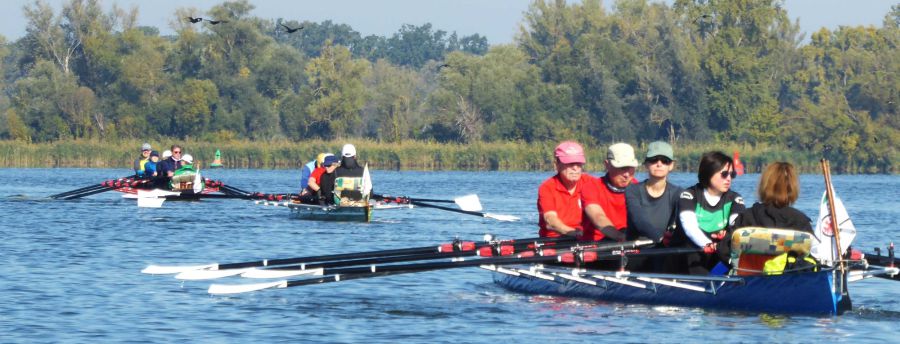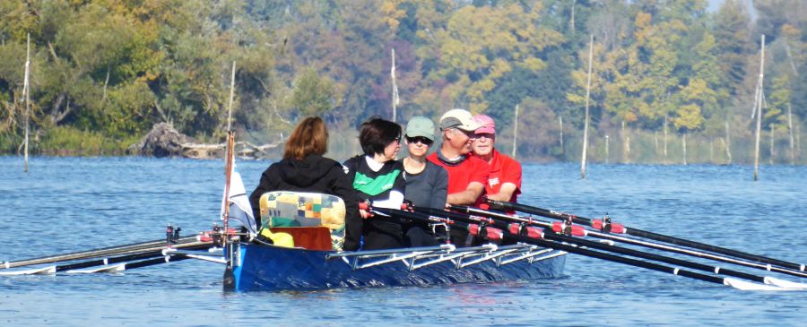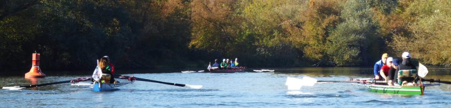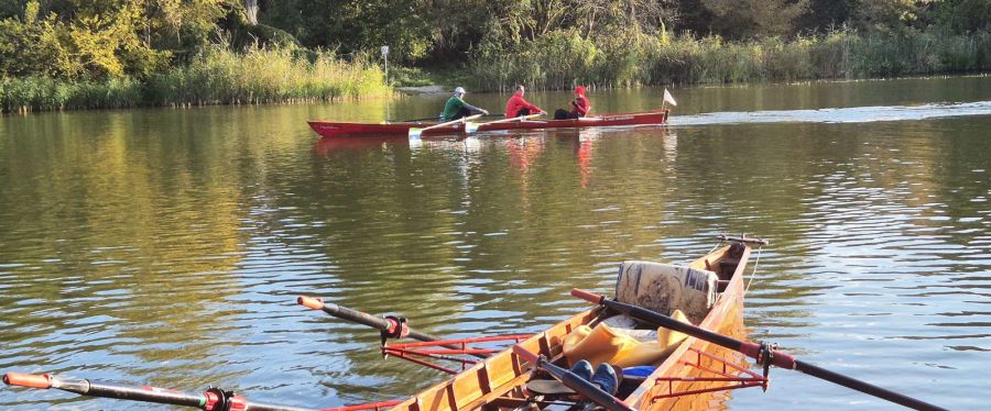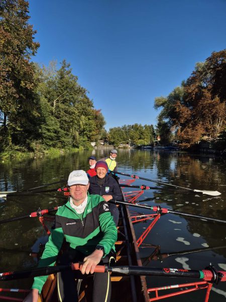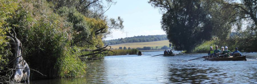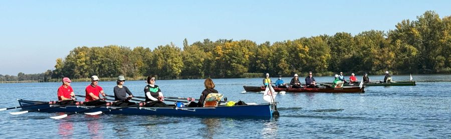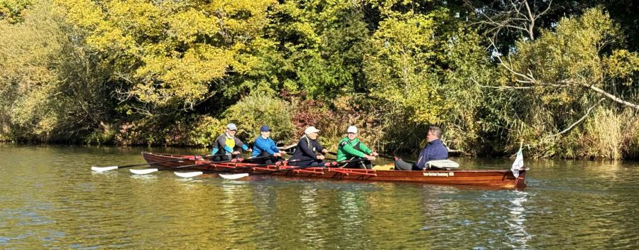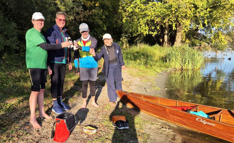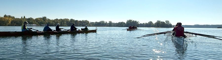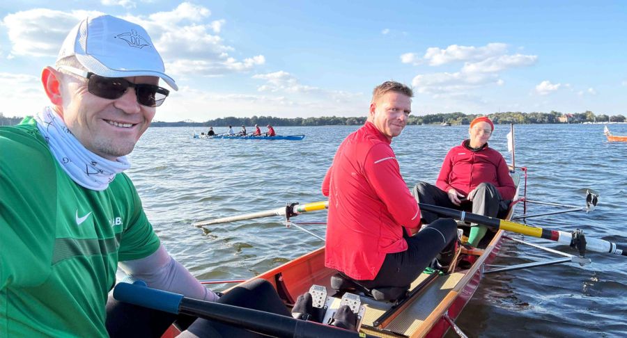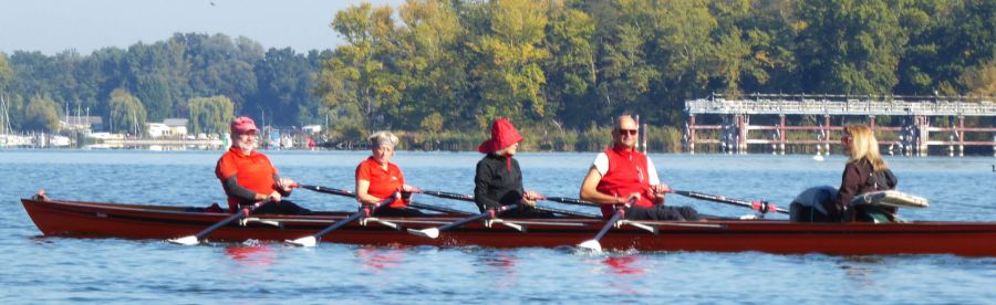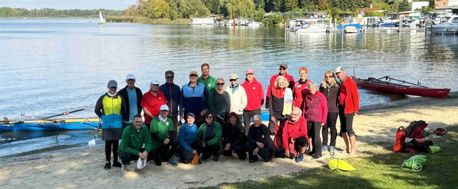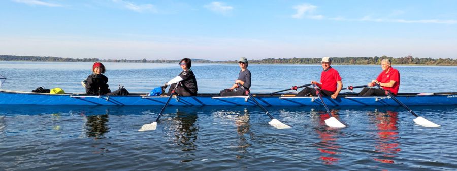 Und wie kann man diesen Feiertag besser zelebrieren, wenn nicht mit einer gemeinsamen Tour eines west- und eines ostdeutschen Ruderclubs. So versammelten sich 11 Ruder*innen vom R.C.H.B. und 11 Gäste vom Regensburger Ruderverein am 03. Oktober um 09:00 Uhr vor den Bootshallen und warteten gespannt auf die Bereitstellung der Boote und die Bootseinteilung. Nach anfänglichen Schwierigkeiten (so musste ein Fünfer auf Vierer mit Steuermannsplatz umgebaut werden), wurden nach und nach die Boote zu Wasser gelassen. So waren wir schließlich fünf Boote (drei Vierer, ein Dreier und ein Zweier jeweils mit Steuermann). Unser Ziel war das ca. 18 Kilometer entfernte Wusterwitz.